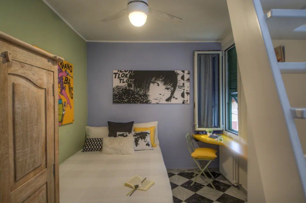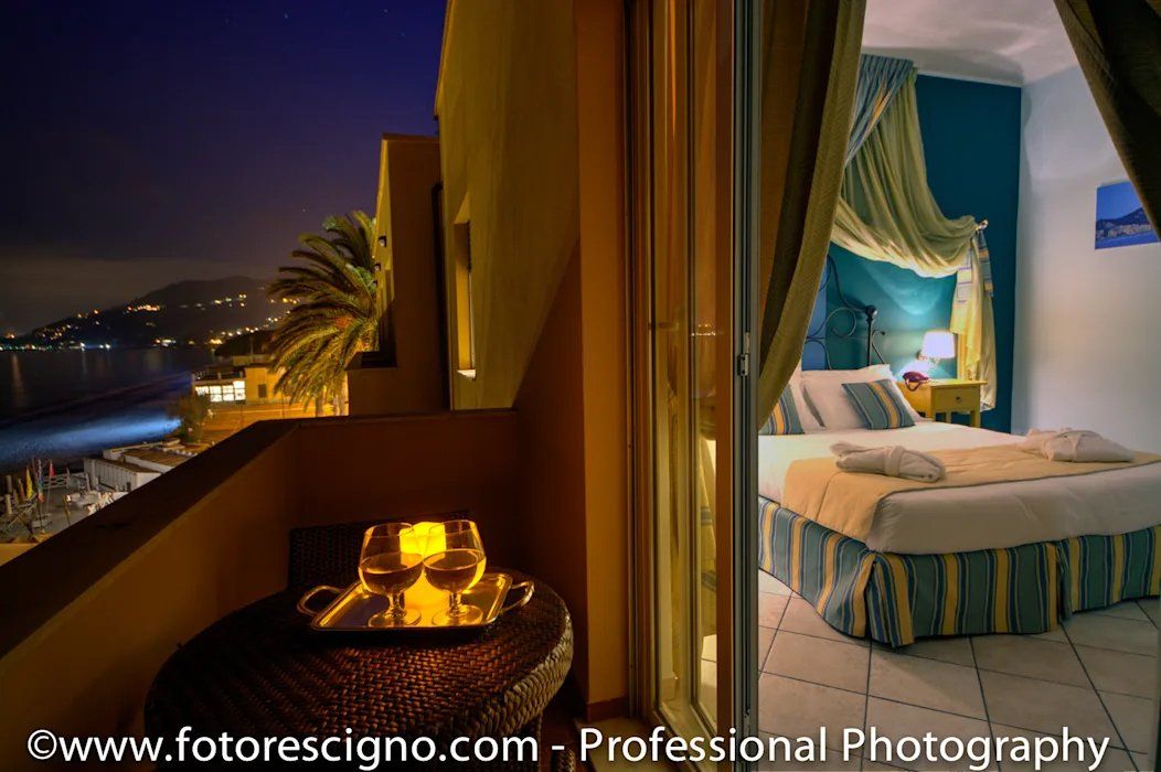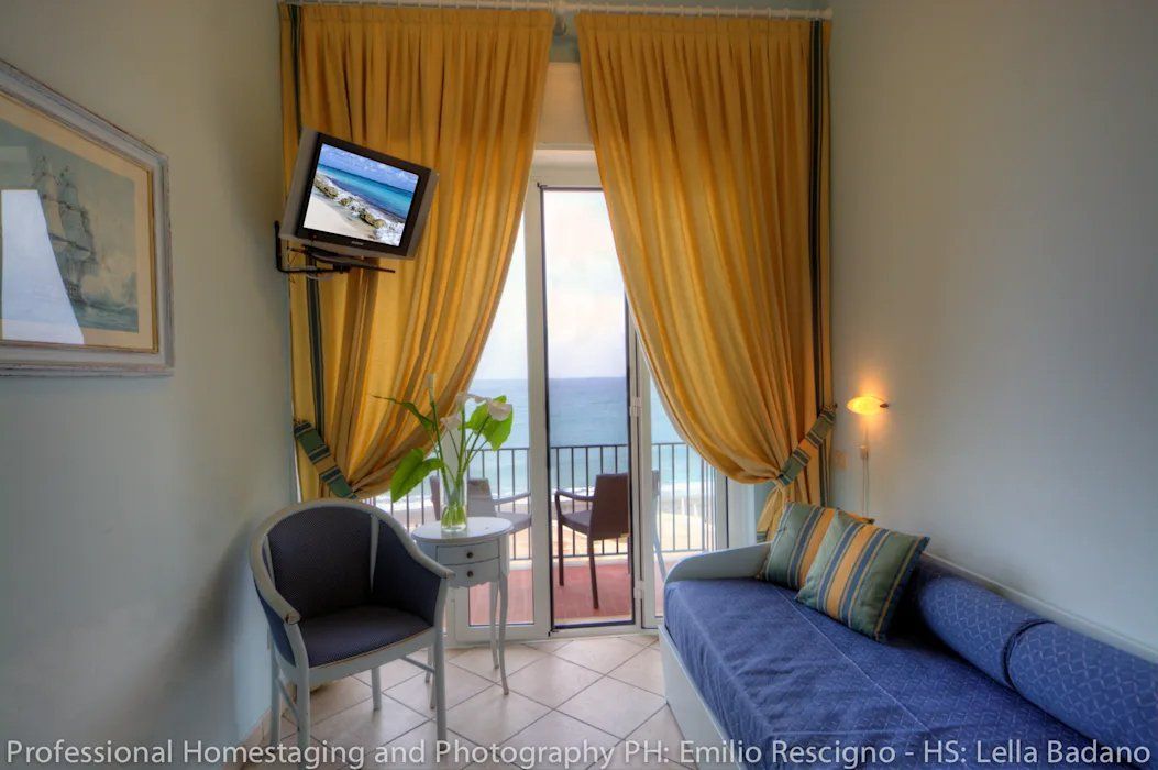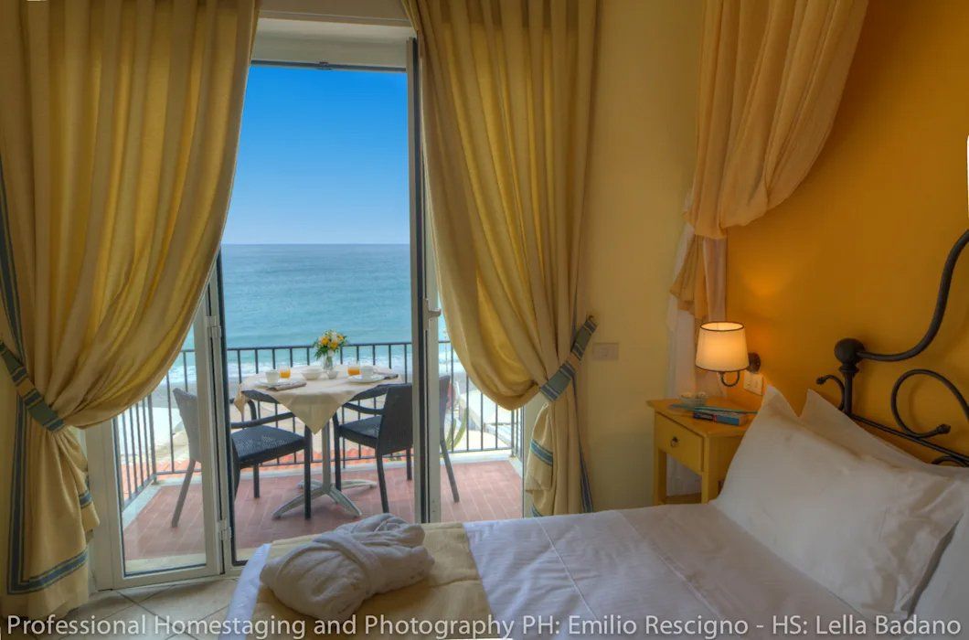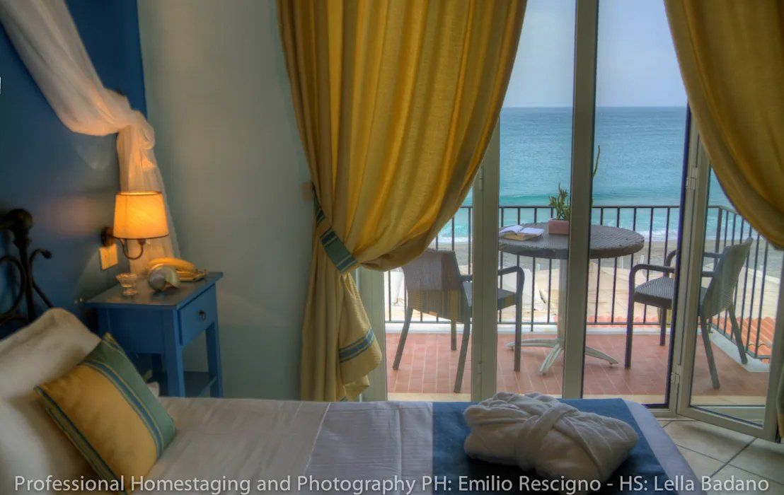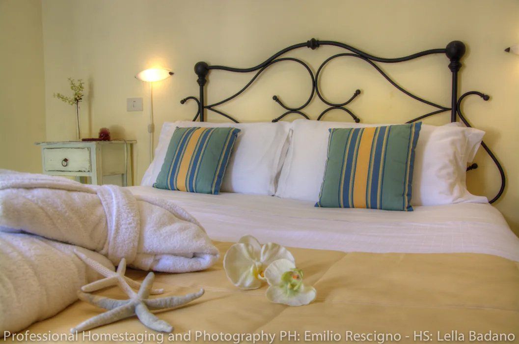 Intervento di home staging in camere d'albergo sul mare in Liguria località Varigotti per servizio fotografico.